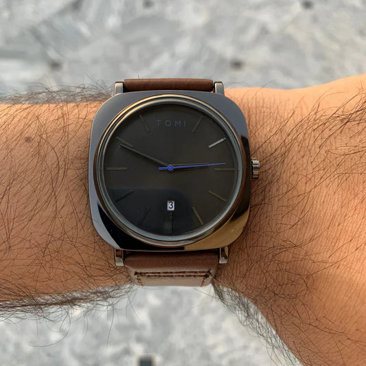TOMI T-098 Men's Watch Date Quartz Round Shape Dial Leather Straps