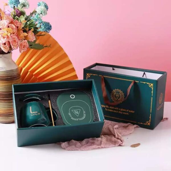 • Package content: This coffee mug warmer set includes a coffee mug warmer, ceramic mug, mug lid, spoon, beautiful hand-wrapped gift box